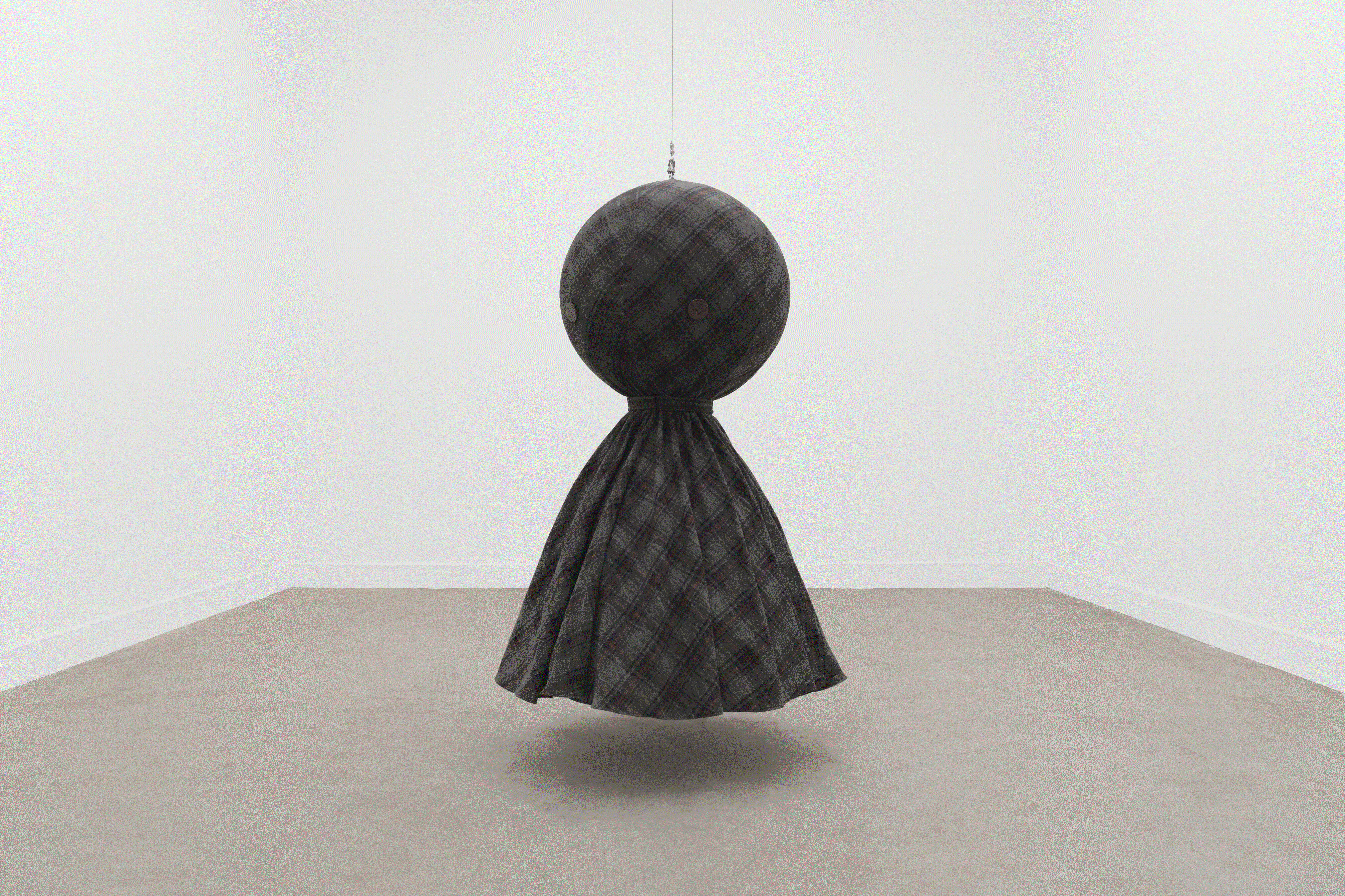 Henry, 2020. Chinese ink-dyed plaid, buttons, crinoline, inflatable ball, stainless steel cable and thread, approx. 120 × 80 cm