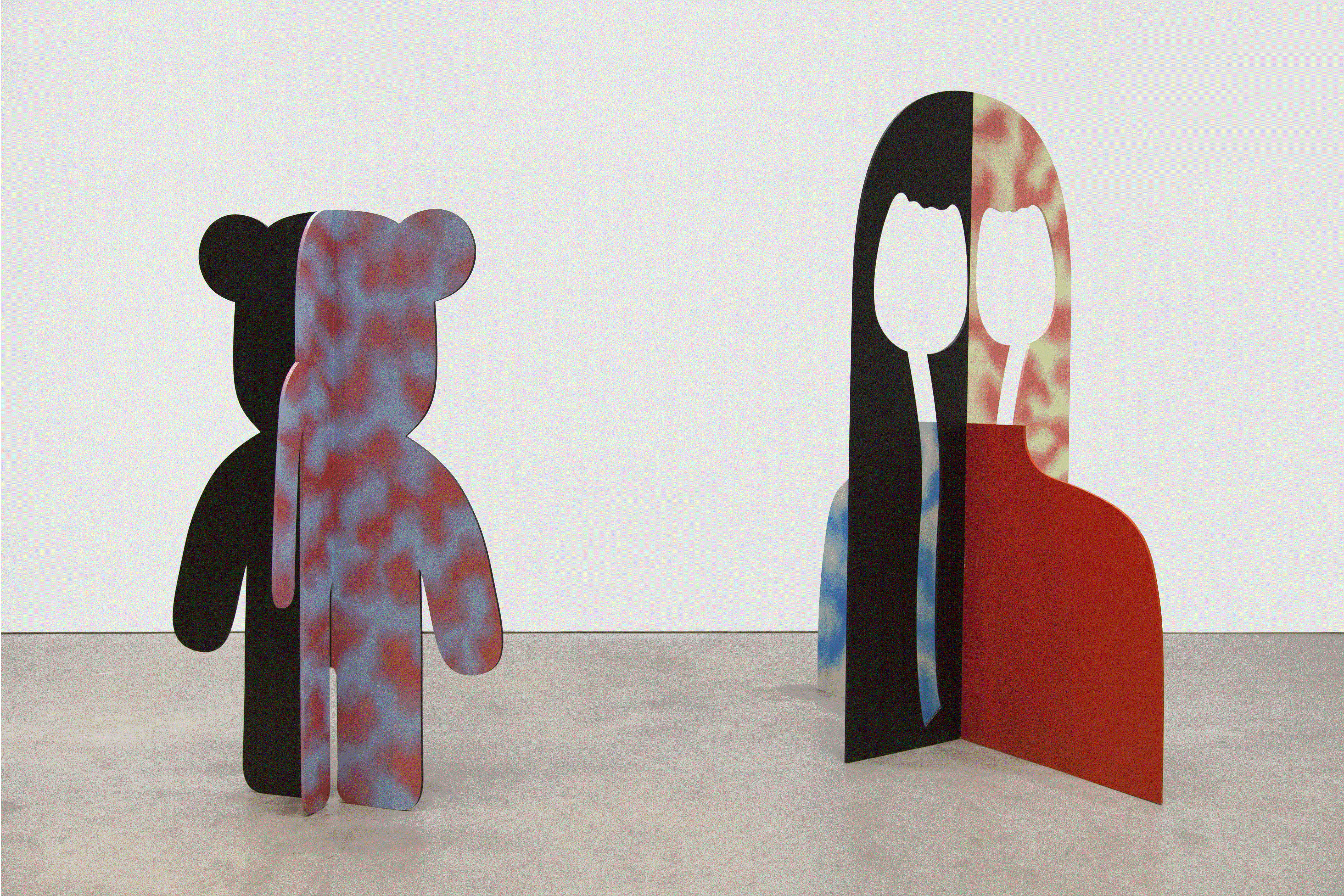 Untitled #38 & Untitled #47, 2018. Acrylic and house paint on MDF, 185 × 116 × 61 cm & 240 × 171 × 114 cm